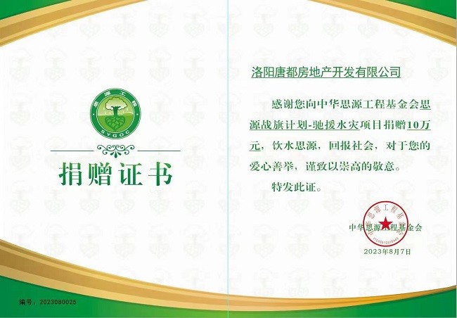 近期,受台风和强降雨影响,黑龙江省哈尔滨市、牡丹江市发生多起洪涝和地质灾害,严重影响人民生命财产安全。天灾无情,民建有爱;风雨同舟,驰援灾区。8月7日,民建洛阳市委委员、企工委主任、洛阳开元矿业集团有限公司董事长许明月,第一时间通过子公司洛阳唐都房地产开发有限公司向“思源工程”捐赠10万元,助力灾区抗洪救灾工作,为保障灾区群众及抗洪抢险一线人员的生活需要尽自己的一份力。