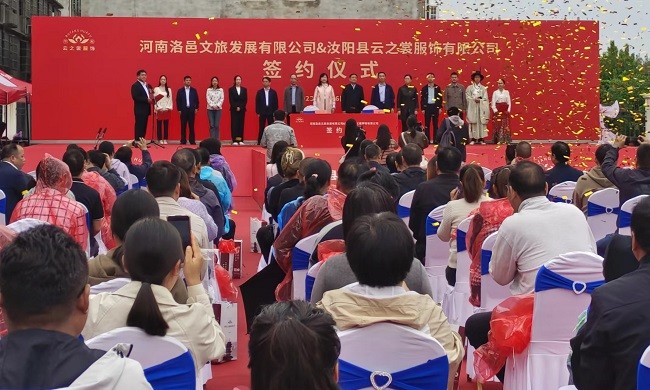 9月26日,洛阳市汝阳县云之裳汉服产业园正式开园。开园庆典仪式由洛阳市民营经济发展促进中心、洛阳市工商联、洛阳市文广旅局和汝阳县委、县政府主办。开园庆典仪式上,河南洛邑文旅发展有限公司与汝阳县云之裳服饰有限公司签约为战略合作伙伴关系。