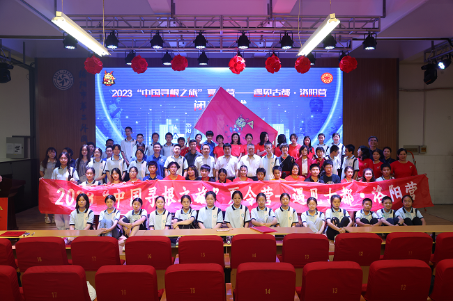 8月10日下午,2023“中国寻根之旅”夏令营遇见古都·洛阳营闭营仪式在洛阳市第二外国语学校举行。河南省侨联文化经济联络部部长邱建锋,洛阳市侨联党组成员、副主席杨晓冬、党组成员、秘书长刘涛,洛阳市第二外国语学校执行校长薛莲,河南唯优国际教育科技有限公司董事长霍枫林等出席闭营仪式,来自美国、西班牙的35位海外华裔青少年和领队老师以及洛阳市第二外国语学校的师生代表共同参加仪式。