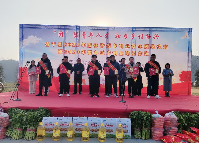会议宣读了《洛宁县2022年度优秀返乡创业青年表彰人员名单》,为15名优秀返乡创业青年颁发了奖牌和荣誉证书。