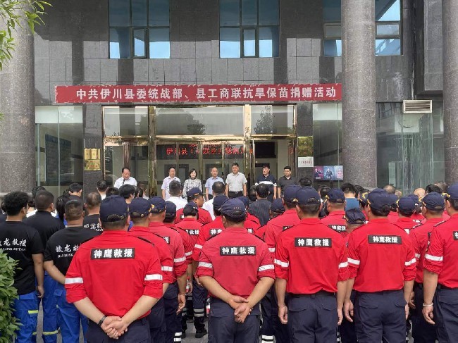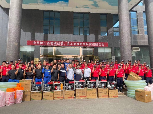 为应对旱情,6月19日,伊川县工商联(总商会)迅速行动,出资购买了一批喷灌机,同时伊川县神鹰救援队与伊川县蛟龙救援队积极响应,出动大量人员,与伊川县总商会共同组建起了20支抗旱服务队,全力以赴投入抗旱工作中。