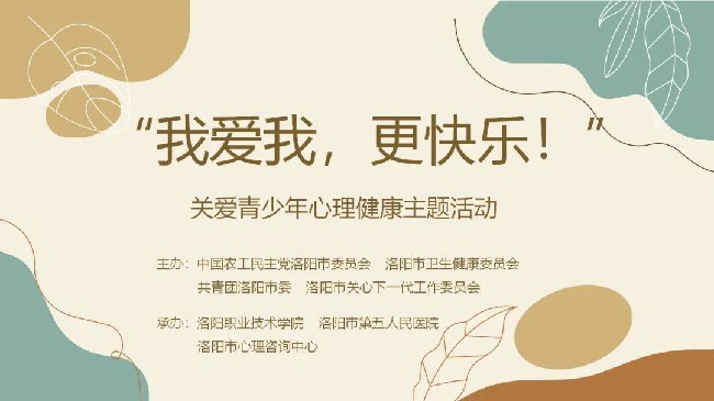 在5月25日心理健康日,由农工党洛阳市委会联合共青团洛阳市委、洛阳市卫生健康委、洛阳市关心下一代工作委员会主办的,洛阳职业技术学院、洛阳市第五人民医院、洛阳市心理咨询中心共同承办的“我爱我,更快乐!”——关爱青少年心理健康主题活动在洛阳职业技术学院举行。
