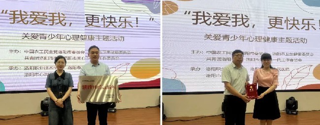 活动中,共青团洛阳市委为洛阳市第五人民医院颁发“洛阳市青少年心理健康辅导中心”牌匾。农工党洛龙二支部主委、市第五人民医院心理科主任、市心理咨询中心主任肖一妙被洛阳职业技术学院特聘为心理辅导专家。