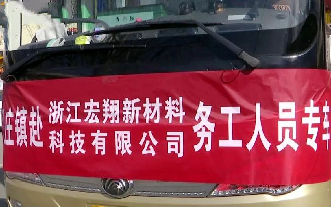 1月30日,洛阳市嵩县闫庄镇组织30多名外出务工人员免费乘坐“直通车”,分赴浙江宏翔新材料科技有限公司等企业,帮助他们有序返岗。